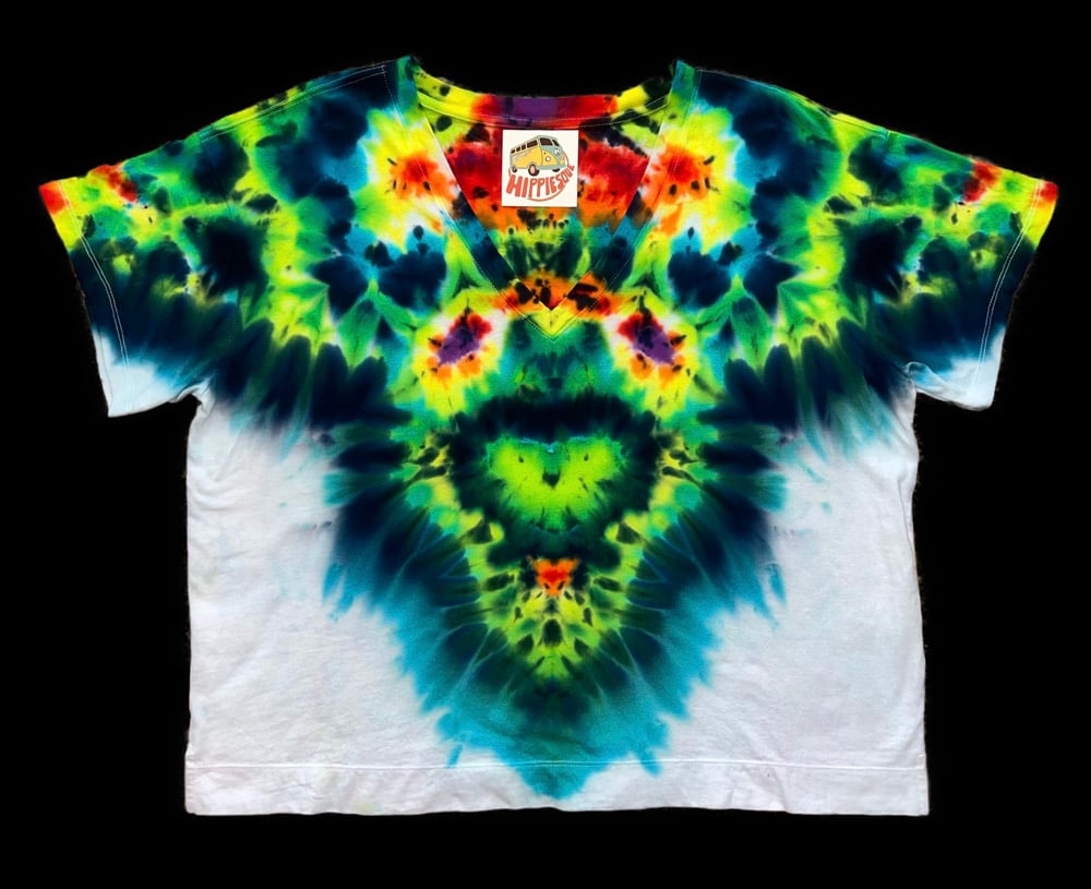 Relaxed fit v neck with rainbow kaleidoscope tie dye