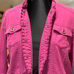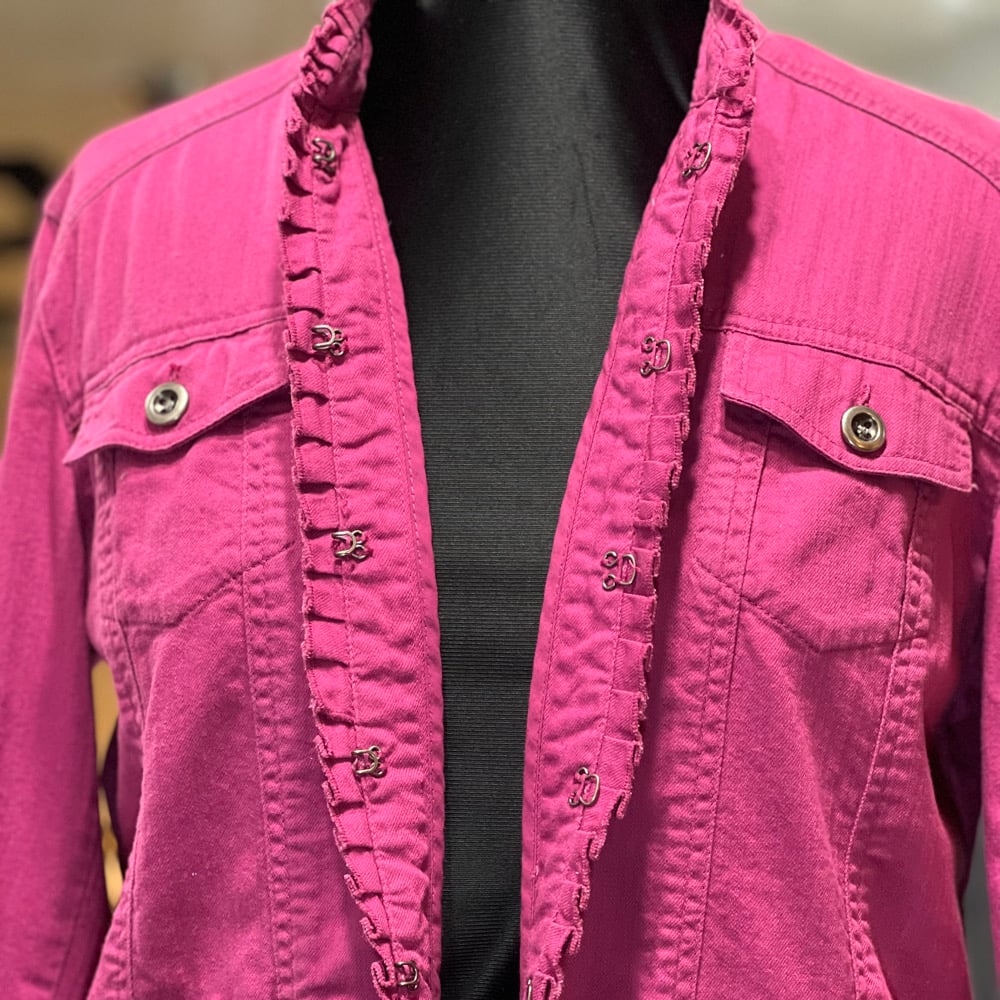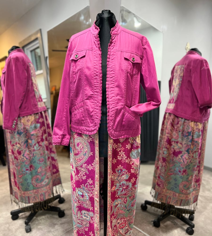 Upcycled pink denim coat with pashmina scarf