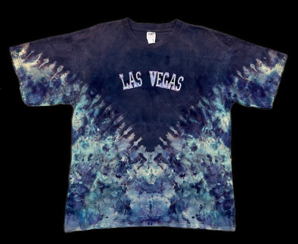 Thrifted Las Vegas tee upcycled with reverse tie dye