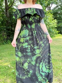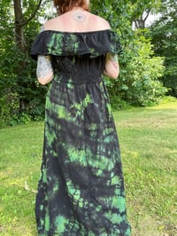 Ruffled Off-The-Shoulder Smocked Maxi Dress, reverse dyed and tie dyed over